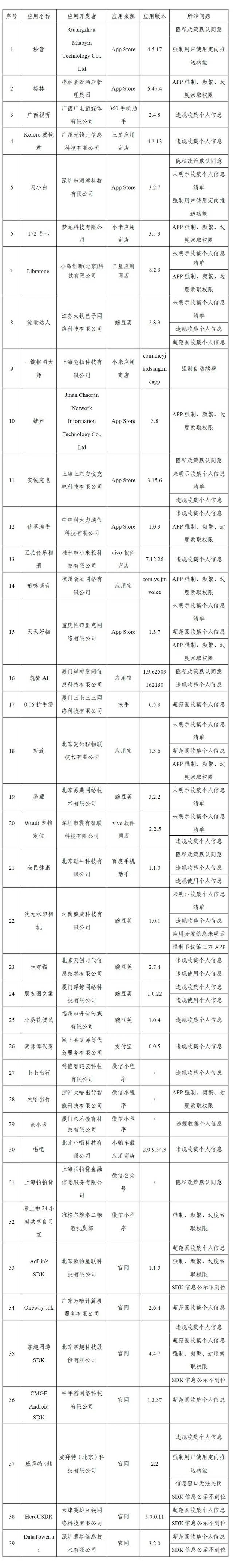 近期,经第三方检测机构抽查,共发现39款App及SDK存在侵害用户权益行为。工信部现对上述问题予以通报。