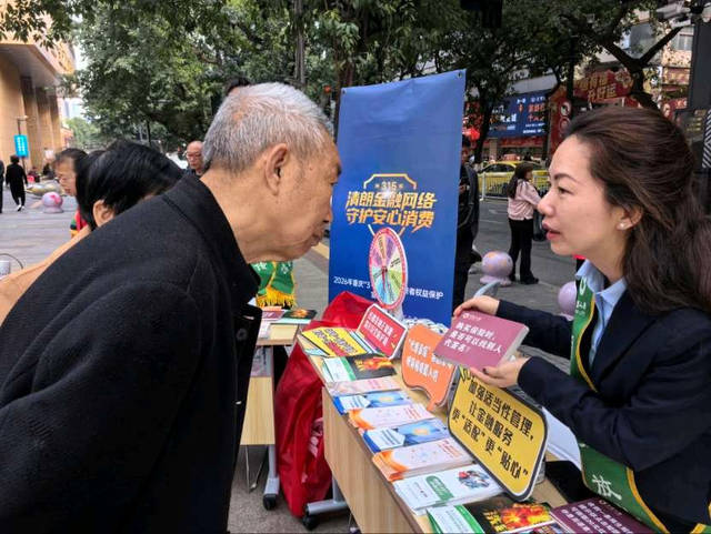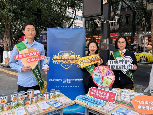 2026年3月13日,由分公司第三营业部、银保支公司、渝中区客户服务中心组建的“国寿宣传队”走进渝中区朝天门大融汇,向来往市民发放《筑牢信息安全防线 守护您的金融隐私》《筑牢理性消费“护城河 守护品质生活“安心港”》《读懂“适当性管理让保障恰到好处”》 等主题宣传折页,精心设置互动问答环节,吸引广大市民踊跃参与,掀起金融消保知识学习讨论的热潮。市民在寓教于乐的互动中,不仅深刻认识到理性选择金融产品的重要性,更有效提升了金融风险识别能力和自我保护意识,切实筑牢金融消费安全屏障。